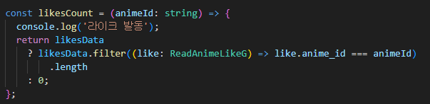 likesData의 경우 현재는 DB호출을 줄이기 위해 최초에 모든 데이터를 받고, 좋아요가 클릭 되었을 때 다시 호출하고 있어 좋아요를 클릭하지 않는 한 변하지 않는다.