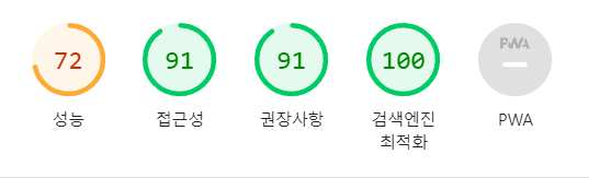 개발환경에서 lighthouse를 쟀을 때