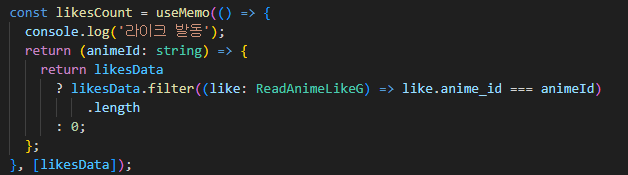 useMemo를 통해 likesData가 변경되야만 실행되도록 했다.